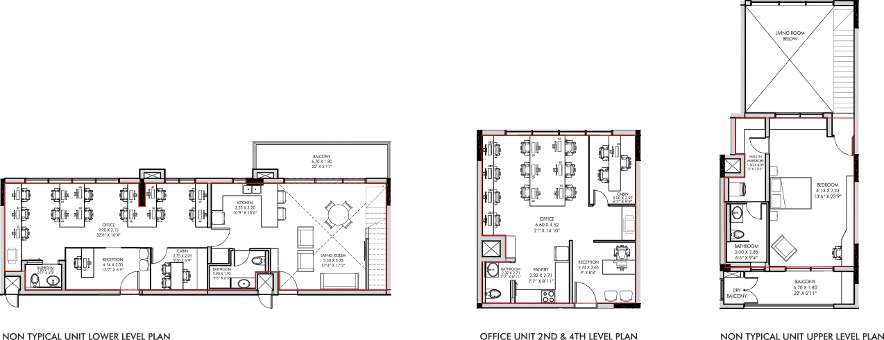 Every home at SOHO is designed to give an integrated living and working experience. The double-height living room of 6.4 mts. amplifies the space, making the evenings at home as delightful as the mornings before work.